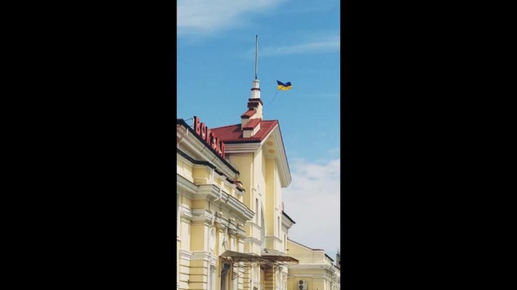 Партизаны в оккупированном Херсоне на железнодорожном вокзале вывесили украинский флаг.
