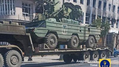 Последствия вчерашней "бавовны" россияне тянут по улицам города в Новоазовск. "Тигры" что-то немного навсегда устали, пишет ТГ-канал "Маріуполь.Спротив".