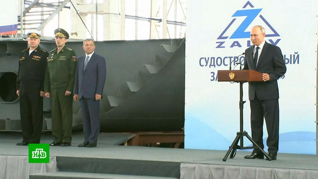 Мероприятие проходит на судостроительном заводе «Залив». Также Путин по видеосвязидолжен связаться с заводами «Севмаш» в Северодвинске и «Северная верфь» в Санкт-Петербурге, где также будут закладывать новые корабли.