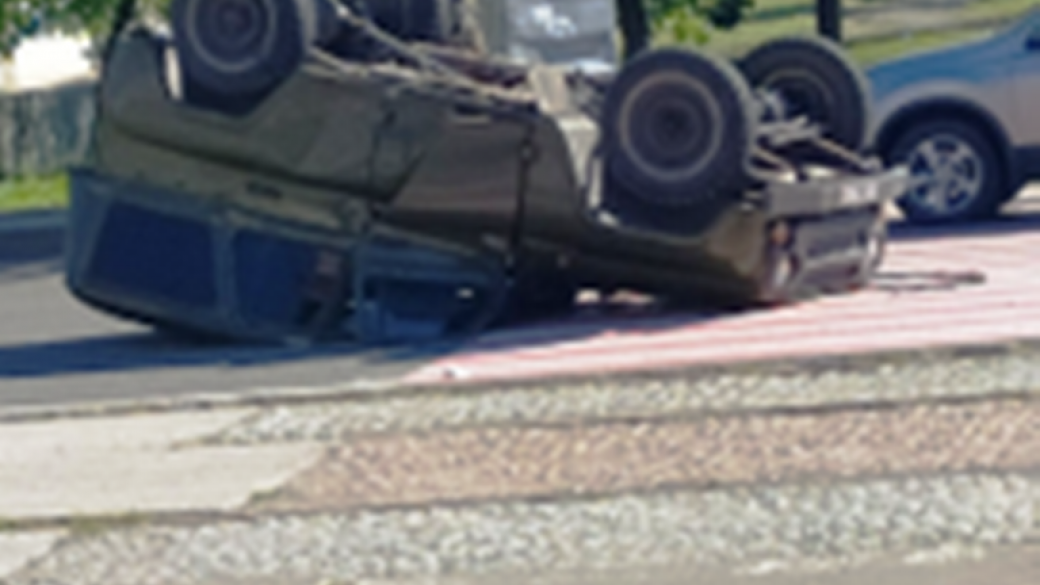 Как видно на снимках, УАЗ с черными «военными» номерами перевернулся, якобы в результате столкновения с автомобилем Volkswagen.