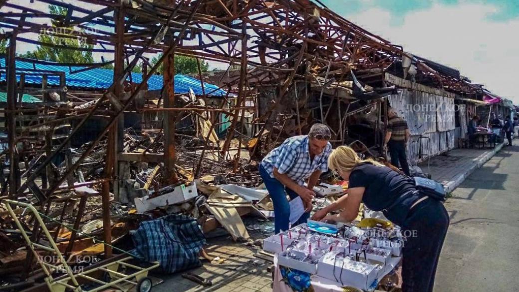 В неподконтрольном Украине Донецке сгоревший в результате обстрела ж/д рынок продолжает работать. Об этом сообщают местные жители в соцсети.