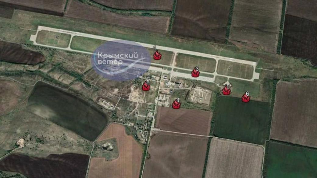 Зафиксирован пожар в районе взлетно-посадочной полосы и стоянок самолетов, сообщает мониторинговая группа.