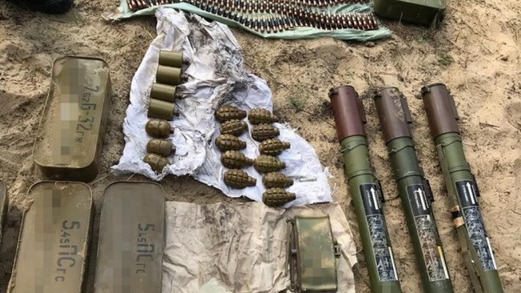 «Сотрудники Службы безопасности Украины, привлеченные к операции Объединенных сил изъяли из тайника, который находился неподалеку лесополосы, три ручные противотанковые гранатометы, противопехотную мину МОН-50, два заряда к миномету калибра 120 мм, три гранаты РПГ-22. Также обнаружено девятнадцать корпусов гранат РГД, РГ-42 и Ф1, три запала для ручных гранат, 3240 патронов калибра 5,45 мм и почти семьсот патронов калибра 7,62 мм».