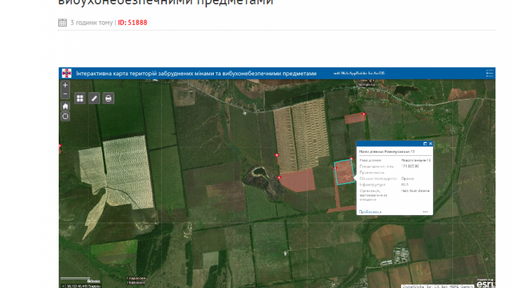 Данная карта появилась на официальном веб-сайте Министерства обороны Украины в разделе «Противоминная деятельности».