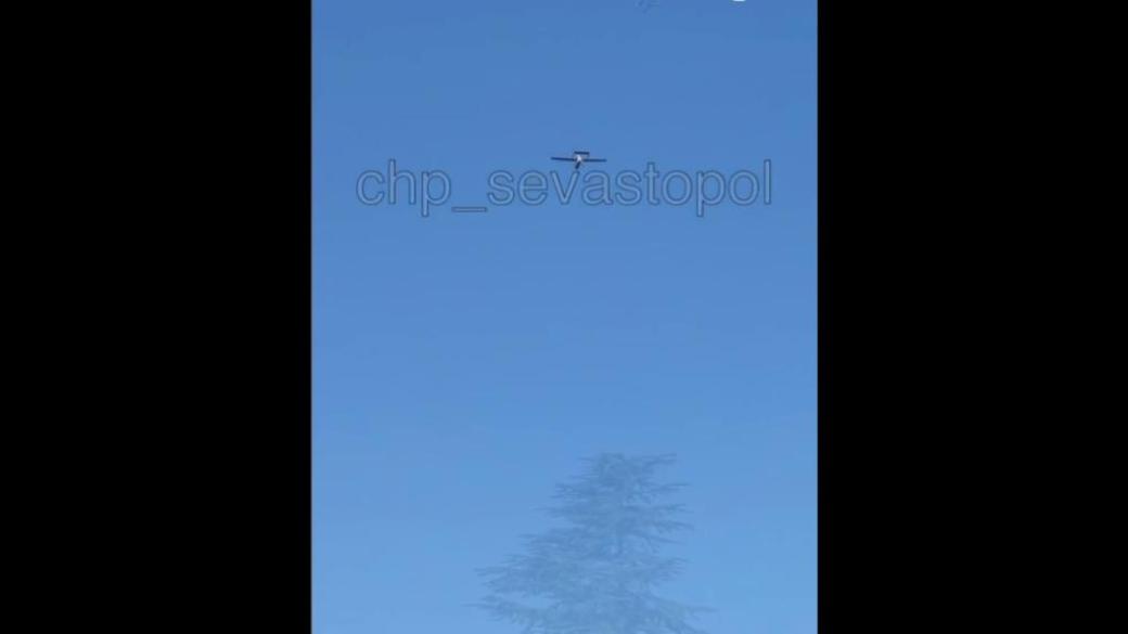 "На втором ролике слышна стрельба. Как ранее сообщал гауляйтер Севастополя, БПЛА пытались сбить, но безуспешно".