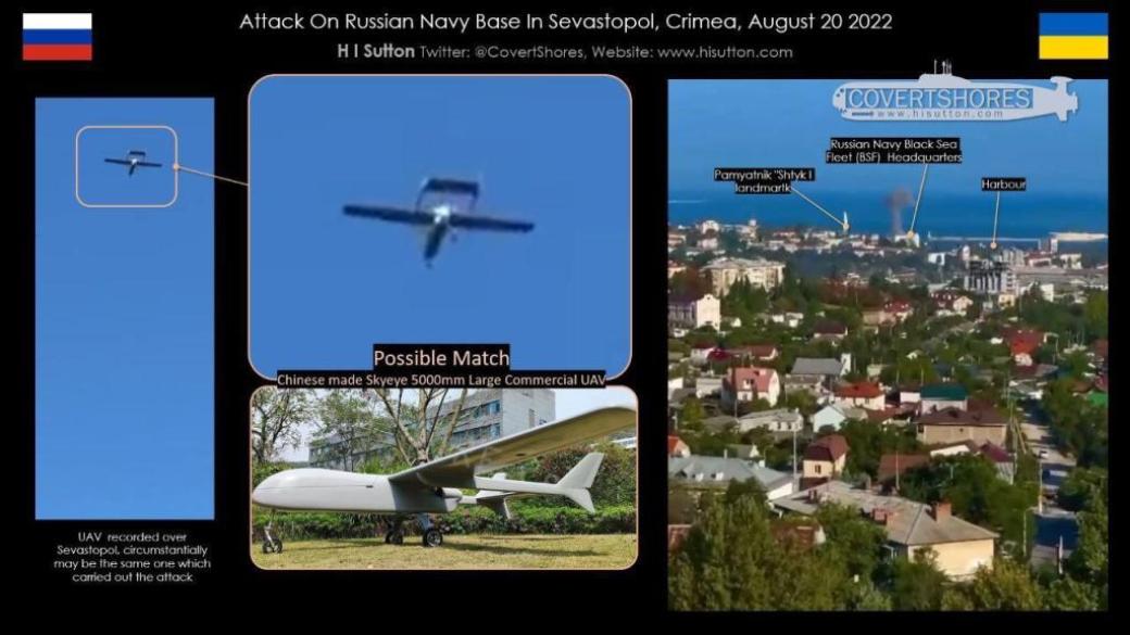 По штабу Черноморского флота РФ в оккупированном Севастополе ударили беспилотником «Mugin-5 Pro» с полезной нагрузкой ~15-20кг, способный летать без дозаправки около 7 часов