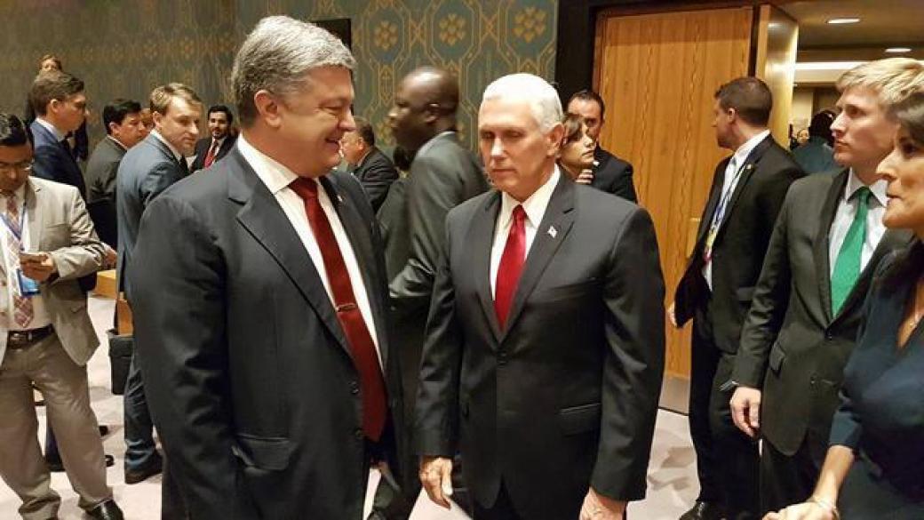 Так, СМИ отмечают: «Пенс и Порошенко выступили на заседании, затем президент Украины покинул зал. Пенс вышел спустя несколько минут».