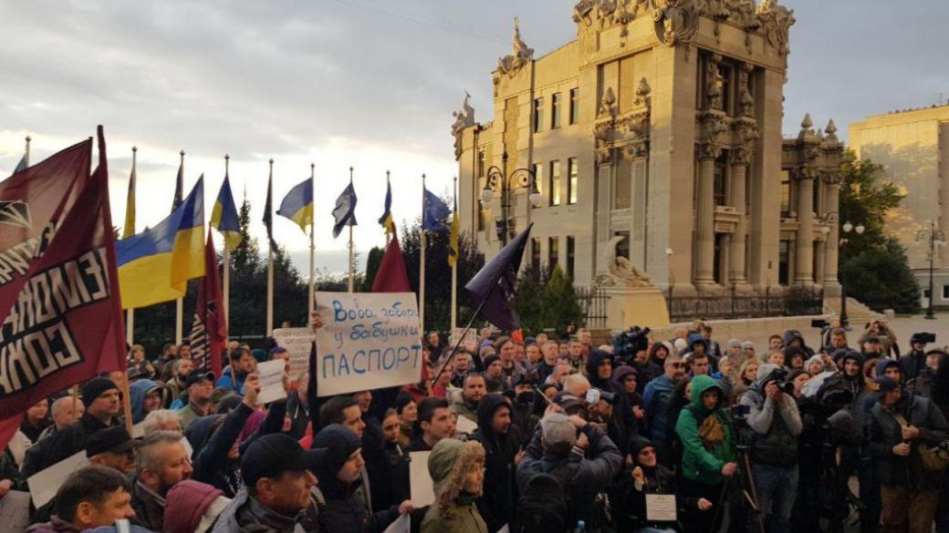 «Россия сделала из Донбасса концлагерь»: в Киеве под посольством РФ активисты требуют открытия КПВВ на Донбассе