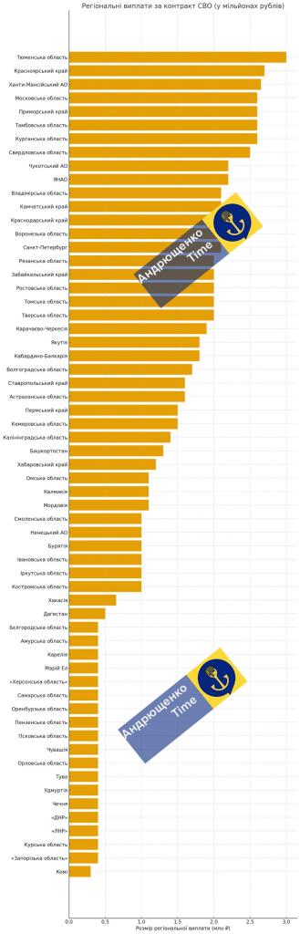 Он опубликовал топ-10 регионов россии, в которых самые высокие выплаты за контракт и отправку на так называемое "СВО", по состоянию на октябрь-ноябрь 2025 года: