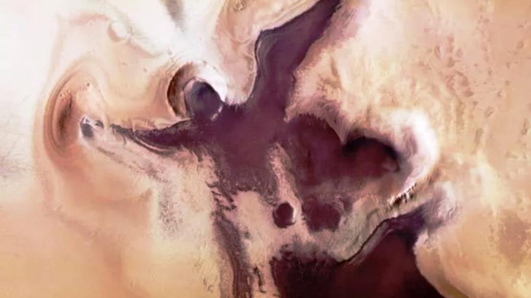 Сотрудники космического агентства ESA опубликовали несколько снимков поверхности Марса, которые по форме напоминают фигуру ангела с нимбом и сердцем. Как сообщает сайт Еxpress, снимки были получены стереокамерой высокого разрешения, их предоставили .