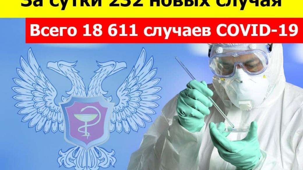 За последние сутки в ОРДО выявлено 232 случая заболевания COVID-19. Об этом сообщает так называемый «минздрав ДНР».