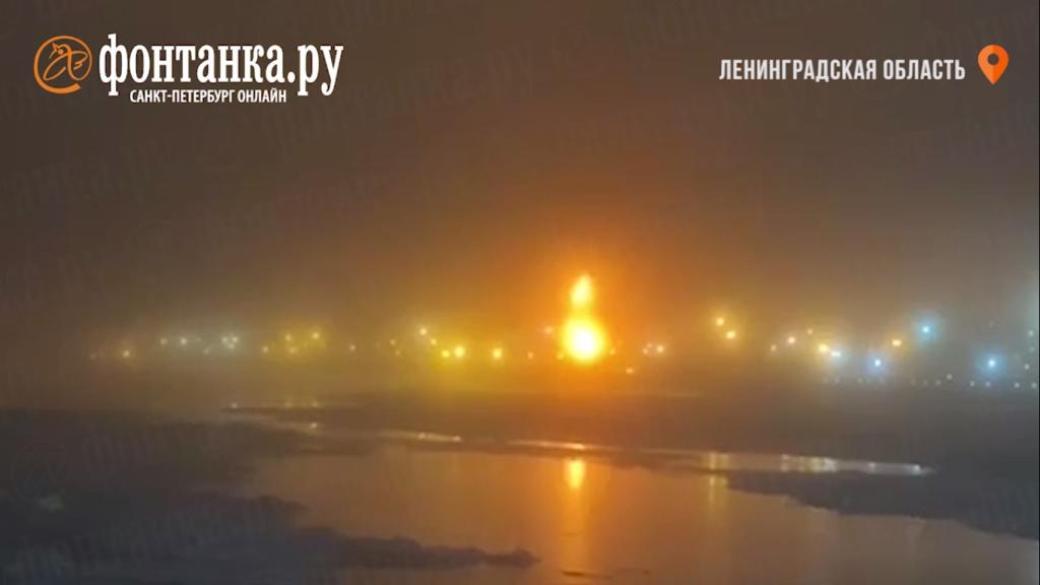 Официально сообщалось только про пожар в порту Усть-Луга, а не его причину. део можно посмотреть тут.