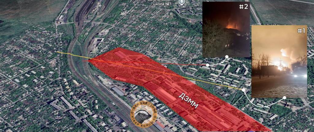 Согласно сообщению канала, после анализа открытых источников стало известно, что поражённый склад находился в одном из зданий бывшего Дебальцевского завода металлургического машиностроения (ДЗММ).