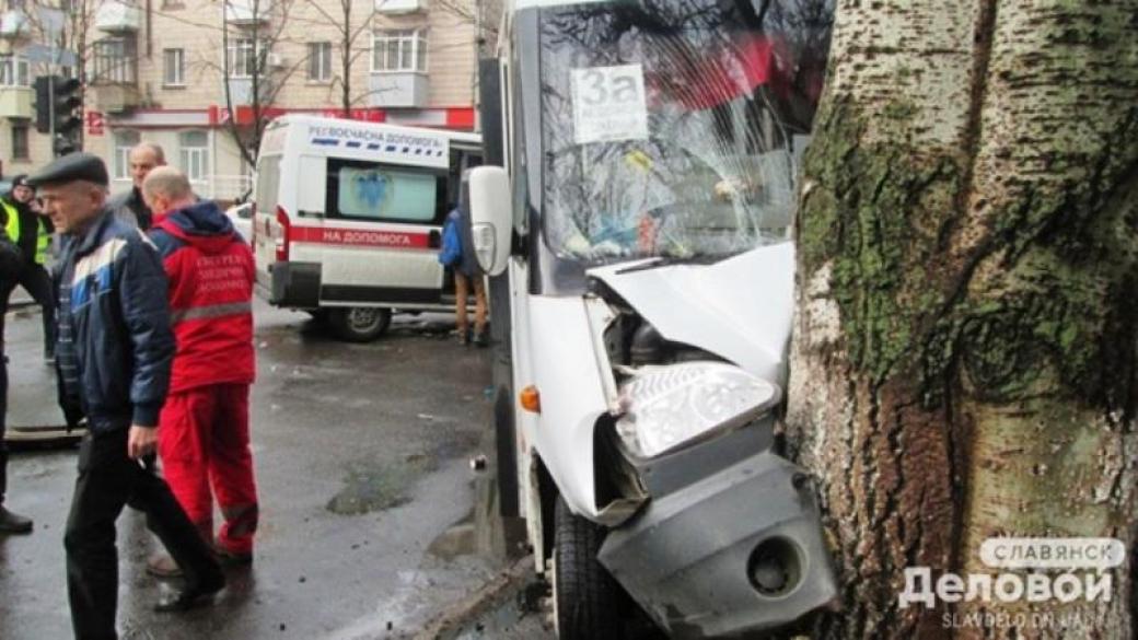 В центре Славянска произошло ДТП с участием маршрутки, в результате чего пострадали девять человек.