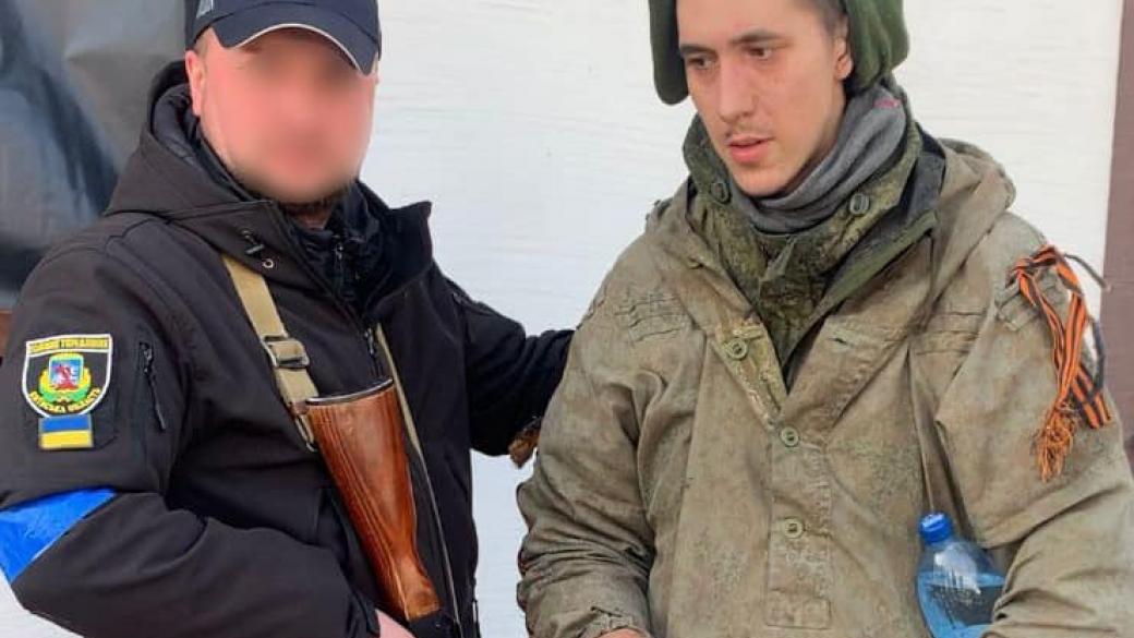 «Растерянный и напуганный „бабкин внук“ с георгиевской лентой на руке. Этого 23-летнего российского пулеметчика Владимира Сафронова из Казани, контрактника, сегодня утром задержали офицер полиции Киевщины совместно с ГУР МО Украины».
