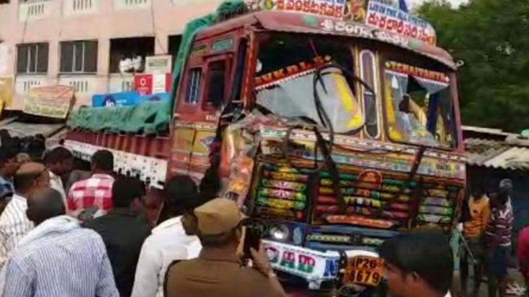 Сообщается, что в индийском штате Андхра-Прадеш водитель грузовика потерял управление и врезался в электрический столб после чего протаранил группу людей. Инцидент произошел около 13:45, когда большое количество людей собралось перед полицейским участком, протестуя против незаконной добычи песка в районе.