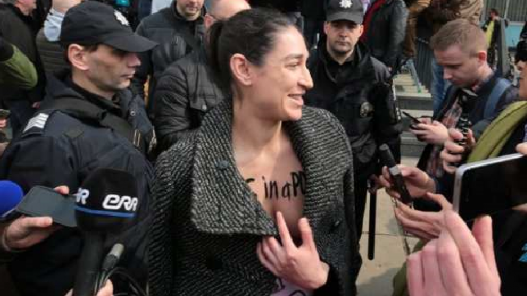 Девушка ыкрикивала лозунг: «Хватит насиловать страну».