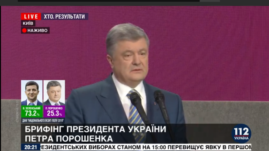 Действующий глава государства Петр Порошенко комментируя данные экзит-полов, согласно которым выборы выигрывает его оппонент украинский шоумен Владимир Зеленский, заявил, что не намерен уходить из политики.