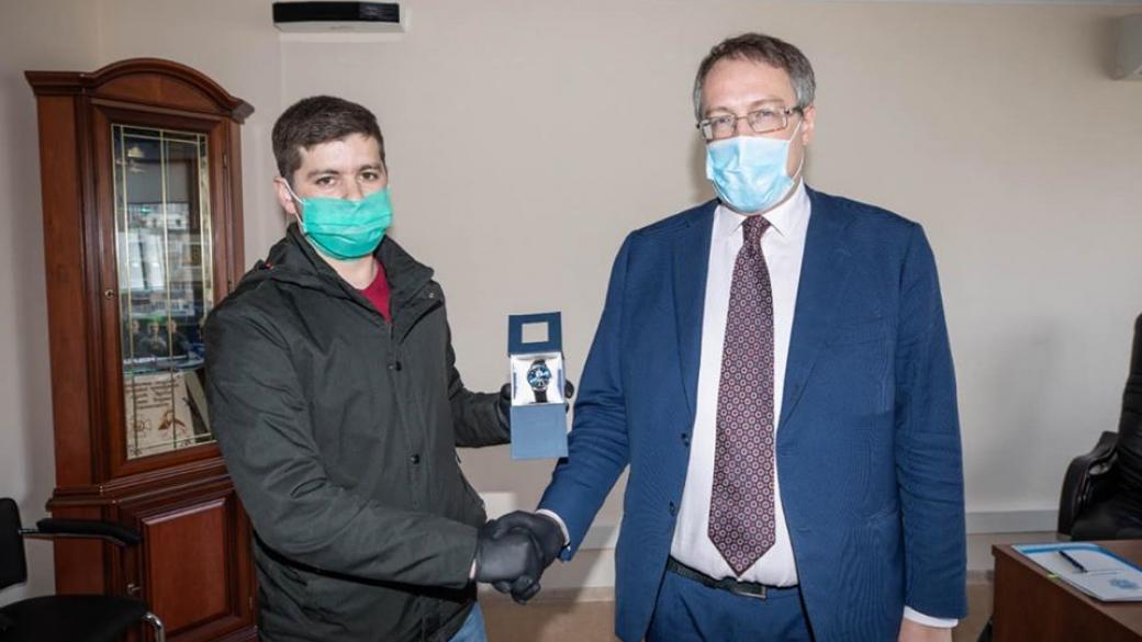«От имени Министра внутренних дел Арсена Авакова вручил наградной часы марки «Клейнод» гражданину Роману Украинцу. Так как он проявил неравнодушие и 1 апреля этого года снял факт возможной причастности двух молодых к поджогу травы в пойме реки Ирпень. А потом вызвал полицию и пожарных. Именно его небезразлична общественная позиция позволили найти и задержать этих парней.