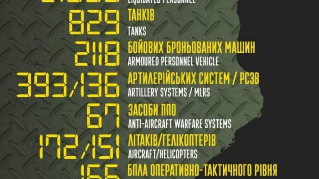 Россия за сутки потеряла в Украине почти 500 военных, самолет, вертолет и десятки танков