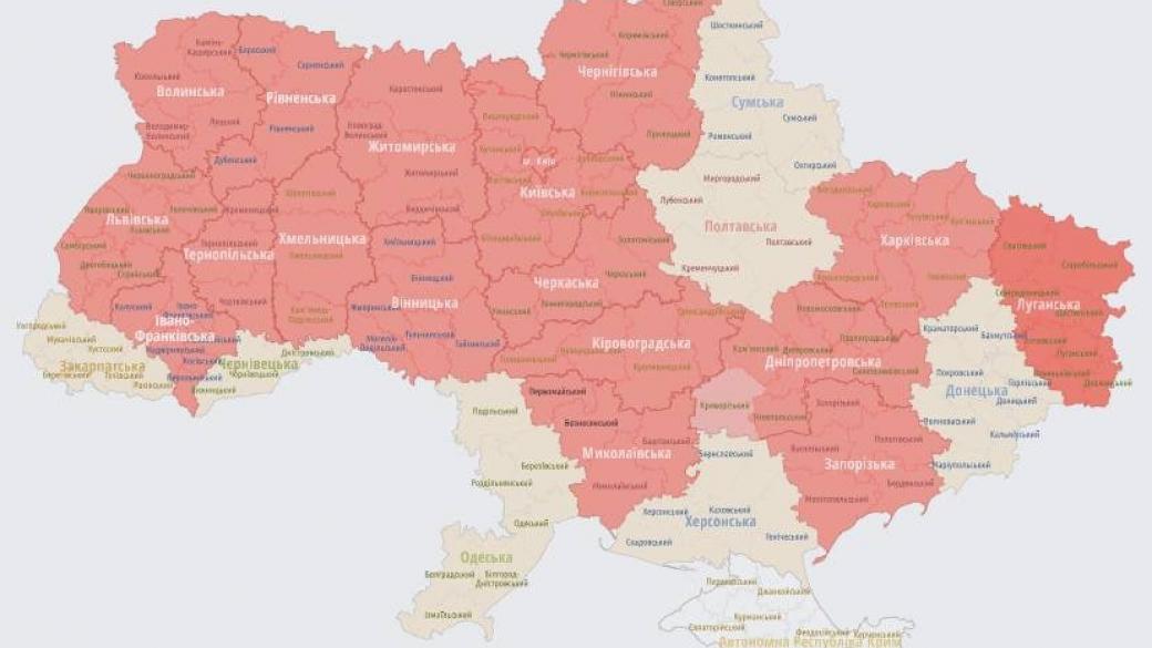 Во многих областях Украины объявлена воздушная тревога из-за опасности ракетного удара с стороны российских войск. Украинцев призывают уйти в укрытия.