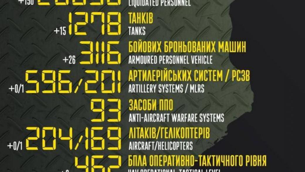 Россия за сутки потеряла в Украине почти 500 военных, самолет, вертолет и десятки танков