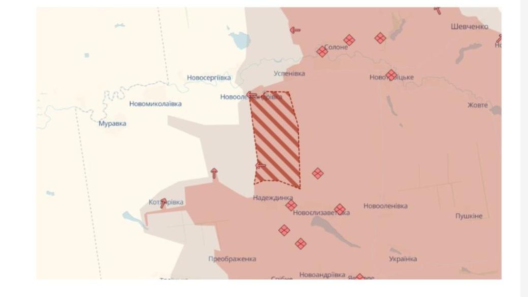 Российские войска продвинулась возле села Новая Полтавка вблизи трассы «Покровск-Константиновка» в Донецкой области. Об этом сообщили аналитики проекта DeepState.