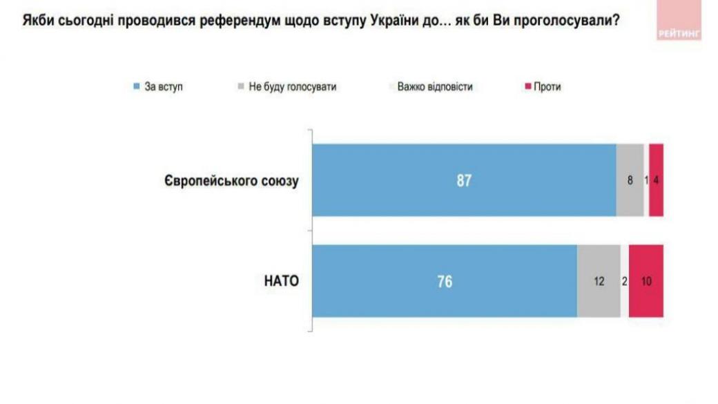 Но даже тогда все еще было «фифти-фифти», сейчас же, после открытой войны, происходит подлинная революция отношения к ЕС и НАТО в украинском обществе.