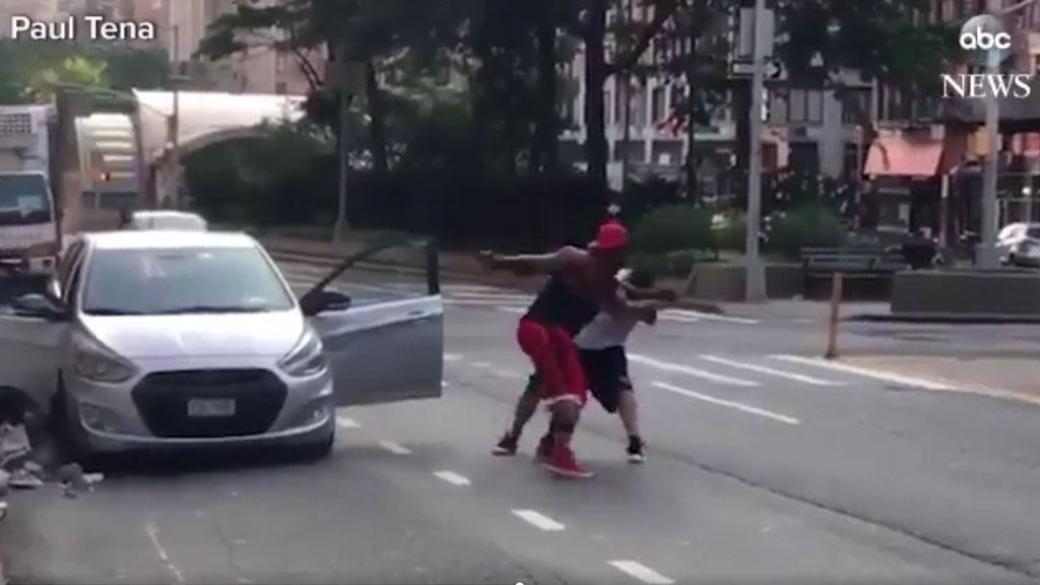 Драка в Верхнем Вест-Сайде взорвала сеть. Мужчины настолько вошли в раж, что использовали для выяснения отношений мачете и мусорные баки.