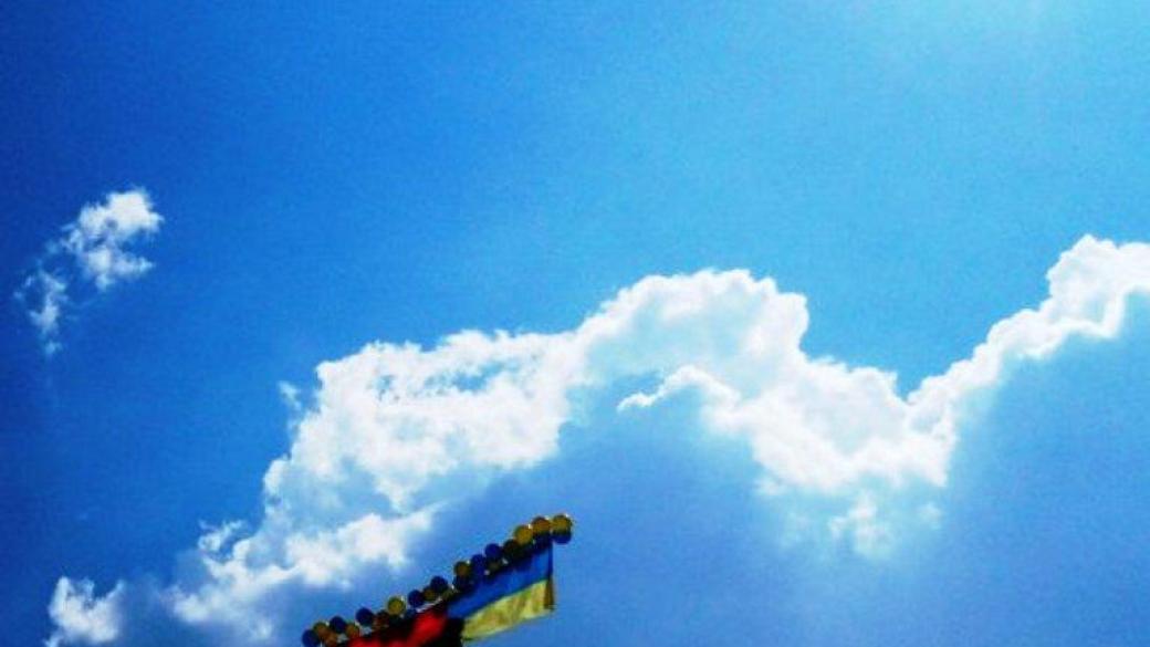 На странице «Исус Навин» в Twitter выложили фото и написали: "Поприсутствовал только что при запуске флага в честь дня освобождения Торецка. С развилки, где памятник».