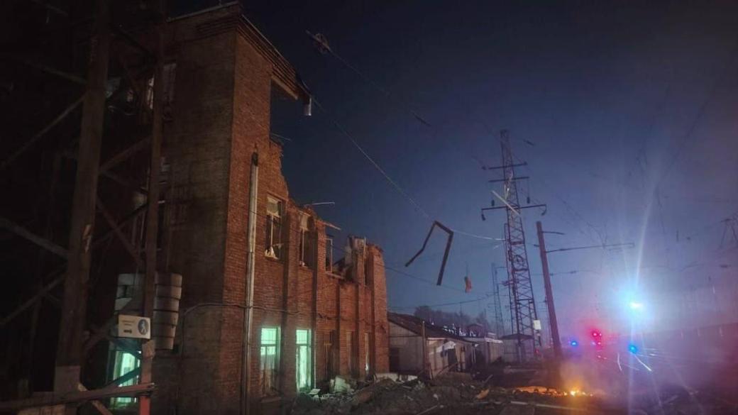 На кадрах зафиксированы пожар и разрушения. Повреждено здание станции.