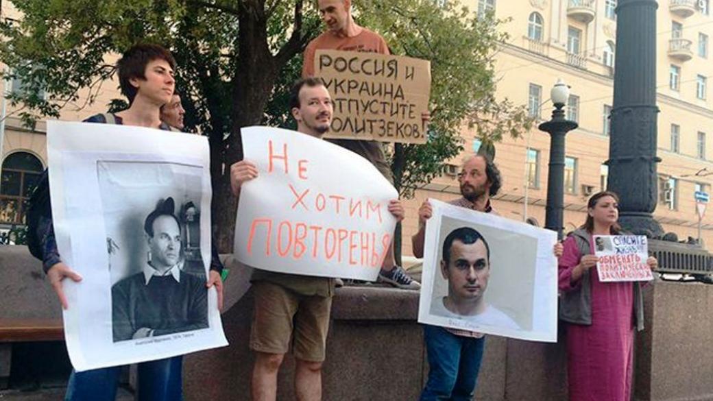 Сегодня в Москве на акции в поддержку политзаключенного в РФ украинского режиссера Олега Сенцова задержали семь человек.