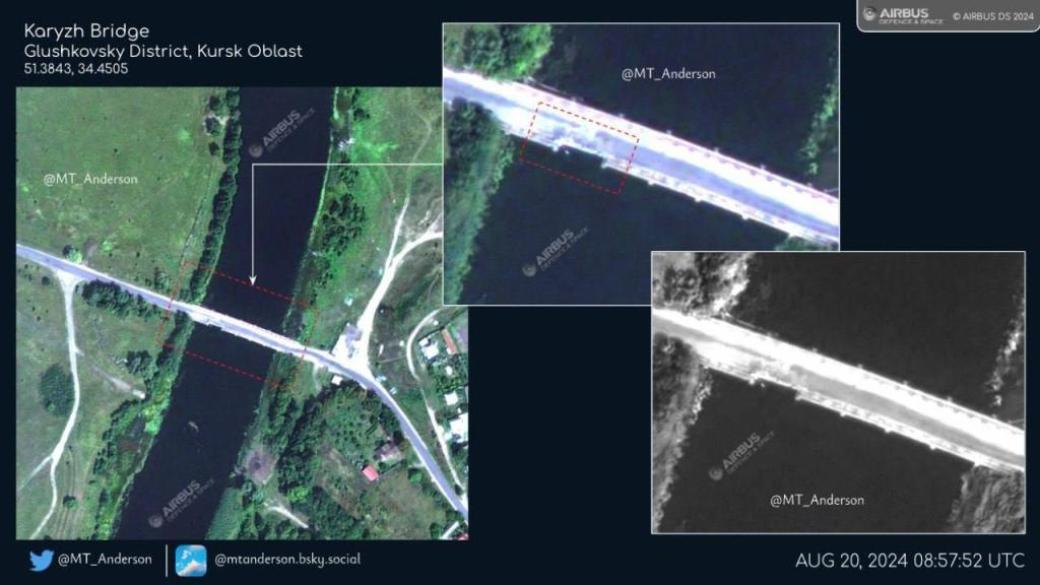 Согласно снимкам, два других моста через реку уже уничтожены украинскими военными, что вынуждает россиян наводить понтоны через Сейм, которые регулярно уничтожаются