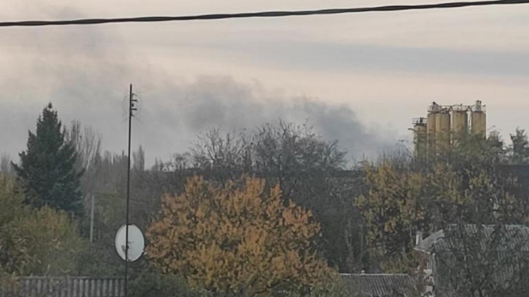 По словам дончан в стороне Азотного виден густой черный дым. По предположениям дончан, снаряд попал в склад БК членов НВФ: