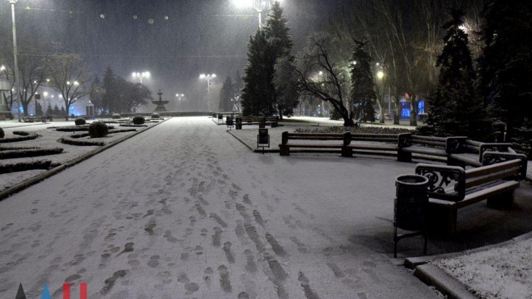 Сегодня в оккупированном Донецке начался сильный снегопад, в результате чего все улицы оказались занесенными снегом.