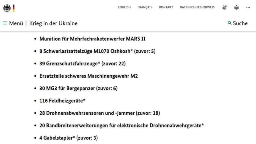 Об этом говорится в обновленном списке помощи на сайте Федерального Правительства Германии.