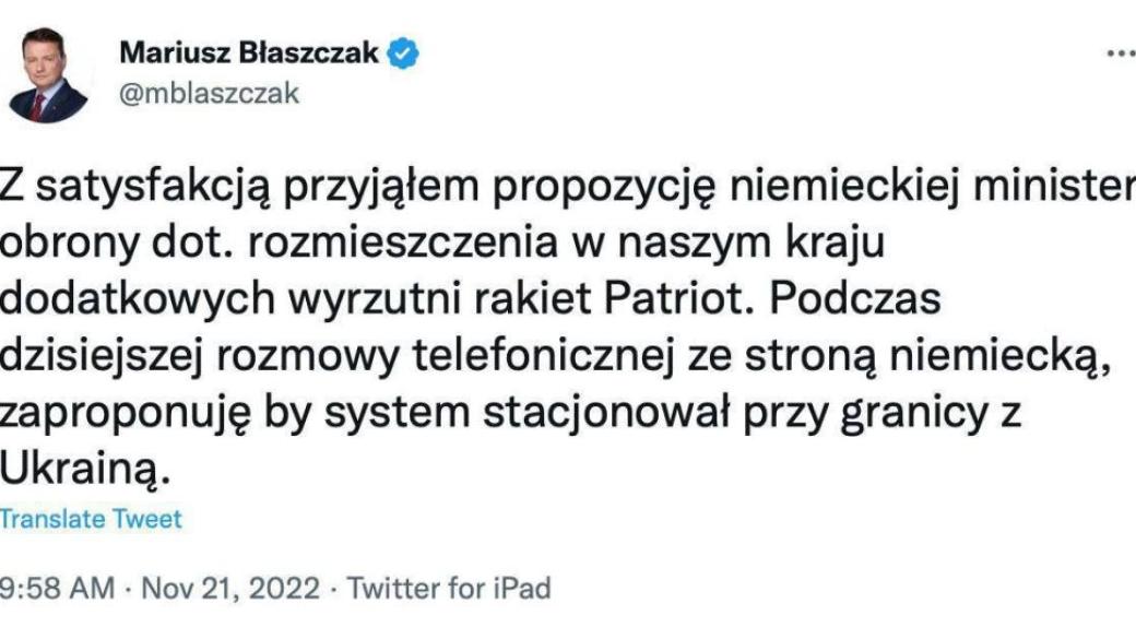 Однако вместо ответа соглашается разместить ЗРК Патриот на границе с Украиной.