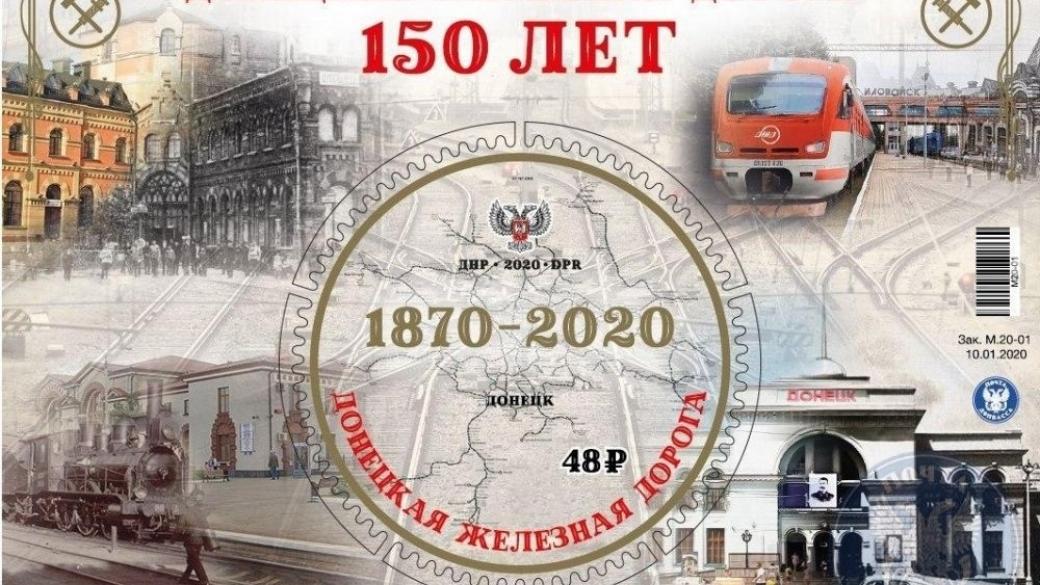 В честь юбилея Донецкой железной дороги, которой исполнилось 150 лет со дня основания, в неподконтрольном Донецке выпустили почтовый блок и четыре вида конвертов с изображениями вокзалов ОРДО, фотографии которые выложила у себя на странице Вконтакте так называемая «Почта Донбасса».
