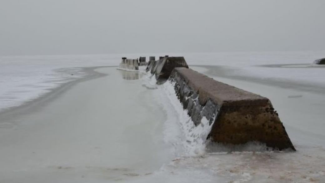 Татай сообщил, что на первых 50-ти метрах Левобережного пляжа в Мариуполе глубина — порядка 40 см. При этом толщина льда — 10−12 см.