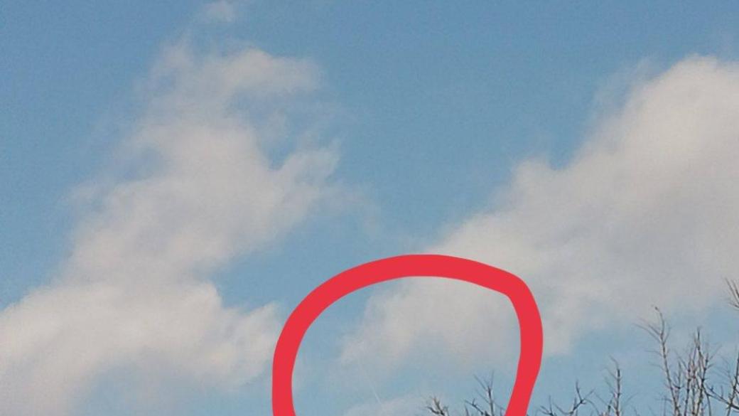 Над городом кружит самолет. Возможно, вылет или самолет переходил звуковой барьер, отмечает автор паблика, ссылаясь на информацию от местных жителей.