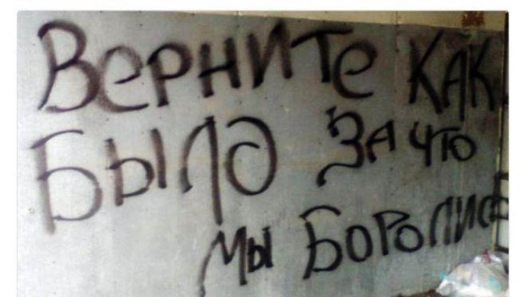 При этом многие заявляют, что если бы знали о последствиях, никогда бы не пошли на референдум. Так, как отмечает в Twitter украинский блогер Necro Mancer на стене дома в оккупированном Иловайске появилась надпись: «Верните, как было. За что мы боролись».