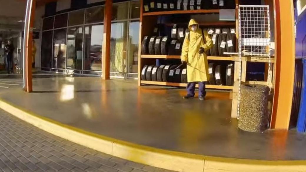 В основном перестали работать непродуктовые магазины. Автор отметил, что сознательность проявили представители крупных торговых марок. Однако гипермаркет «Эпицентр» работает в привычном режиме — ажиотажа не наблюдается, сотрудники в масках, снаружи человек в защитной одежде проводит дезинфекцию.