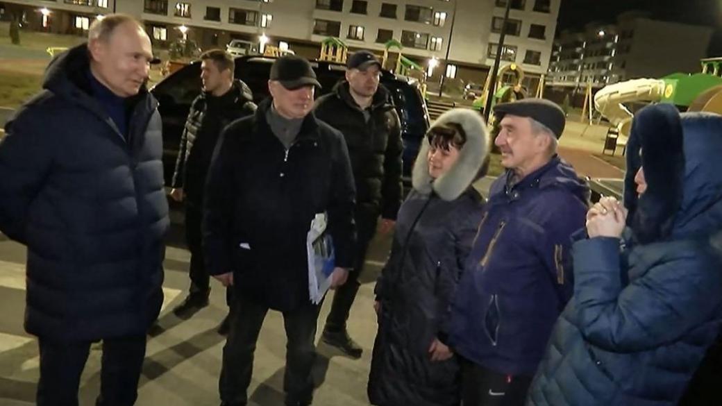 Издание отмечает, что в захваченный город якобы Путин надел пуховик от итальянского премиального бренда Loro Piana, в котором ранее появлялся на пропагандистском концерте-митинге в столичных Лужниках ровно год назад, когда "праздновал" годовщину аннексии Крыма.