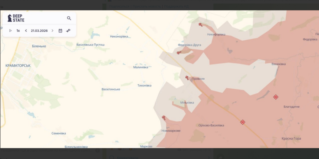 Мониторинговый проект DeepState обновил карту боев в Донецкой области. Согласно последним данным, российская армия продвинулась у двух населенных пунктов.