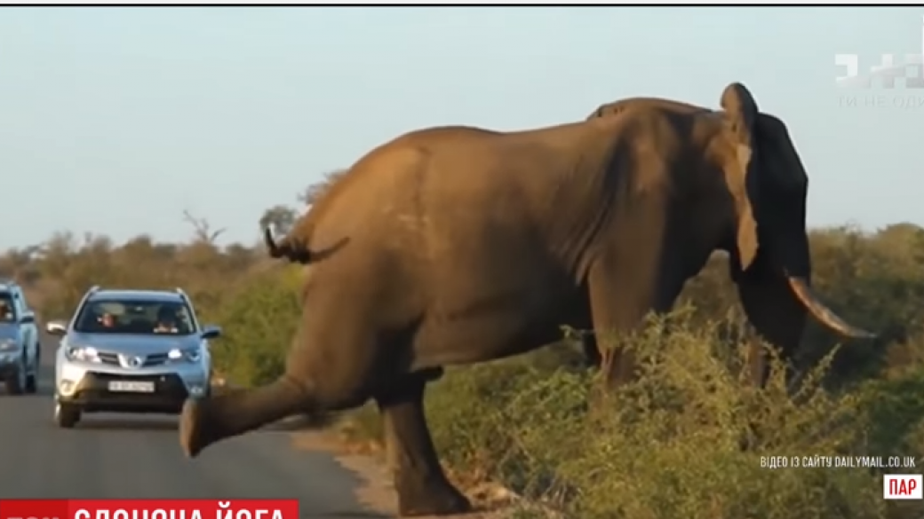 На одной из дорог Южной Африки из-за слона, занимающегося разминкой, полностью остановилось движение транспорта.