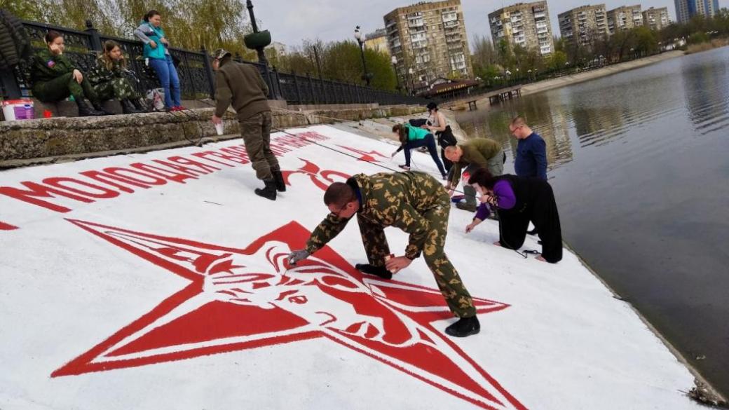 Идея принадлежит участникам местного «военно-патриотического движения» «Молодая гвардия — юнармия». На странице штаба организации в ВК сказано, что изображение посвящено «75-летию Победы и Дню становления организации».