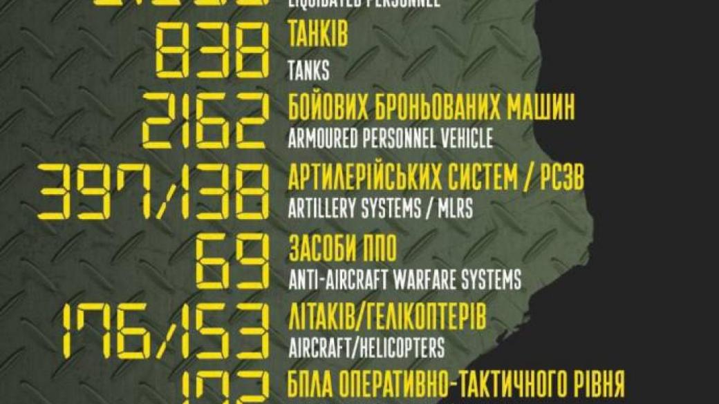 С начала полномасштабного российского вторжения общие боевые потери противника в Украине с 24.02 по 22.04 ориентировочно составили около 21 200 человек личного состава. Об этом сообщает Генштаб ВСУ.