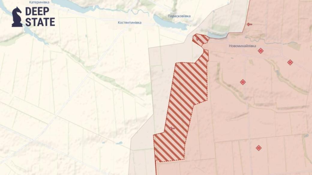 Село Новомихайловка на Марьинском направлении Донецкой области на данный момент почти полностью оккупировано российскими войсками. Об этом сообщают аналитики украинского проекта DeepState.