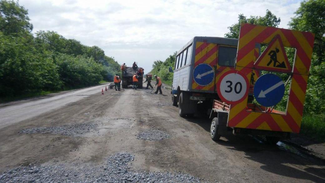 Из-за непосредственной близости дороги к линии фронта принято решение провести ямочный ремонт используя шлак. На сегодня таким образом выровнены около 10 км дороги.