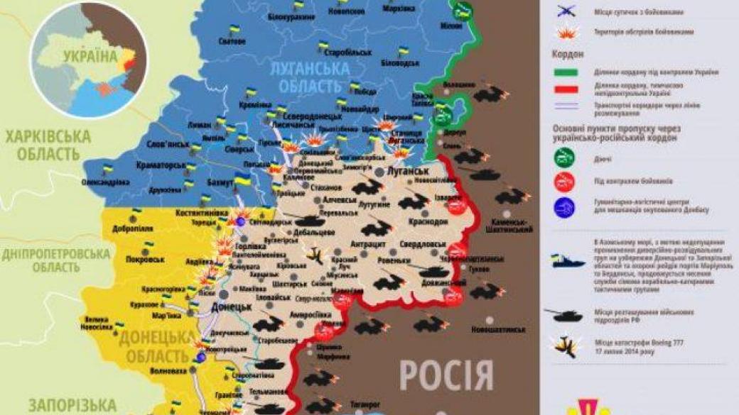 Об этом заявил спикер Минобороны Украины по вопросам АТО Андрей Лысенко. Так, он отметил, что на Луганском направлении вчера было выпущено всего около 15 мин в трех разных местах — в Крымском, Орехово и Новоалександровке. В отличие от прошлых дней, боевики открывали огонь равномерно по всему фронту, конкретных «горячих точек» не было.